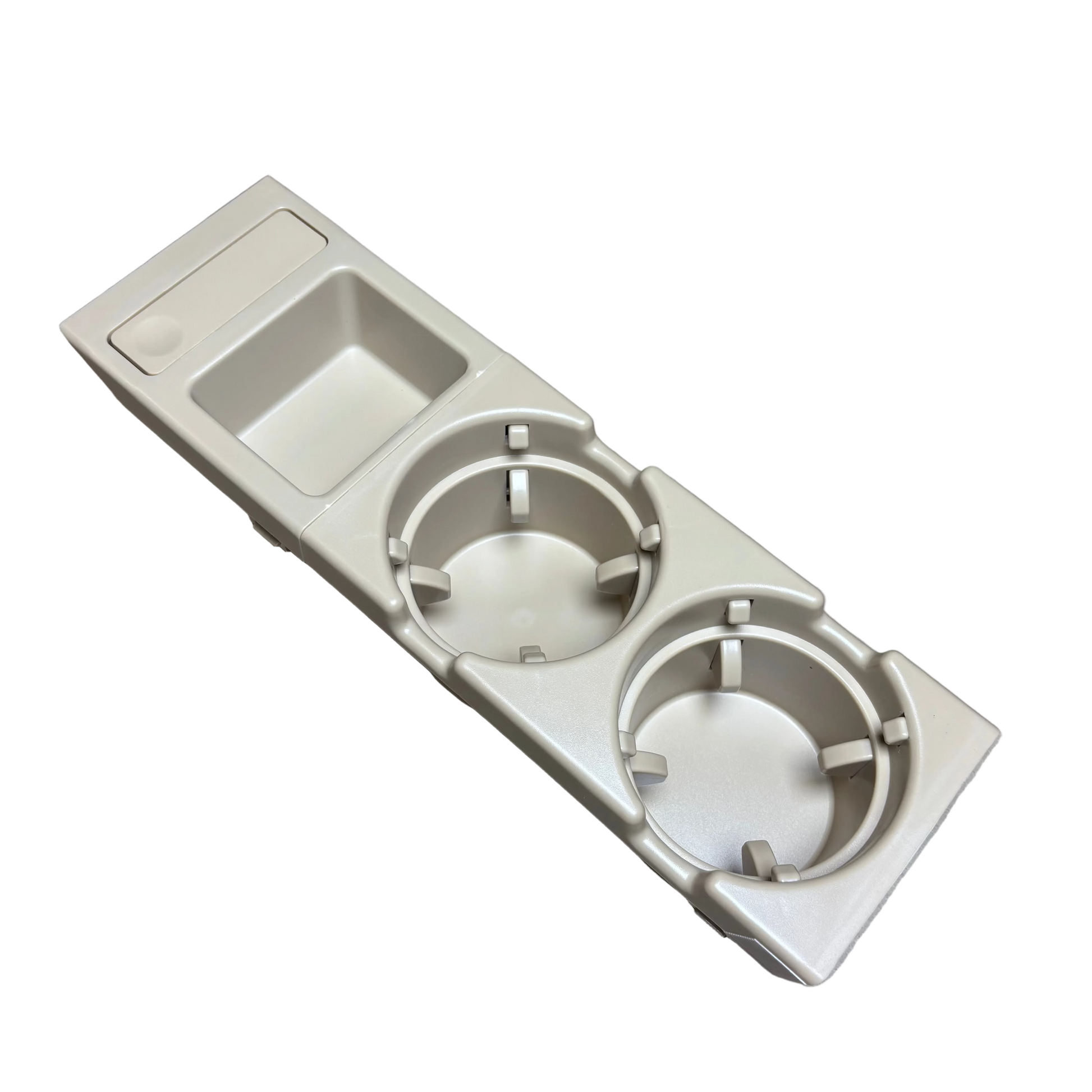 Direct-fit replacement for cracked, discolored, or missing front cupholders in the E46.